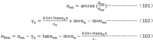 假定用一個特殊齒條的齒形系數值近似地替代内齒輪的齒形系數 。該齒條的齒廓是基本條齒廓的一種改型,它能展成内齒輪的精確配對齒輪的法向齒廓(包括齒頂圓與齒根圓),齒頂載荷角爲αn