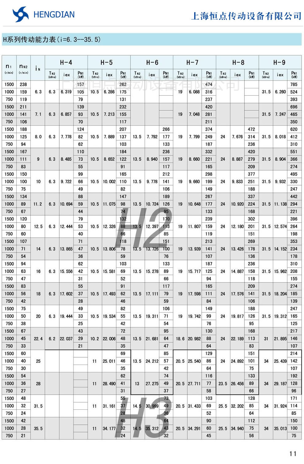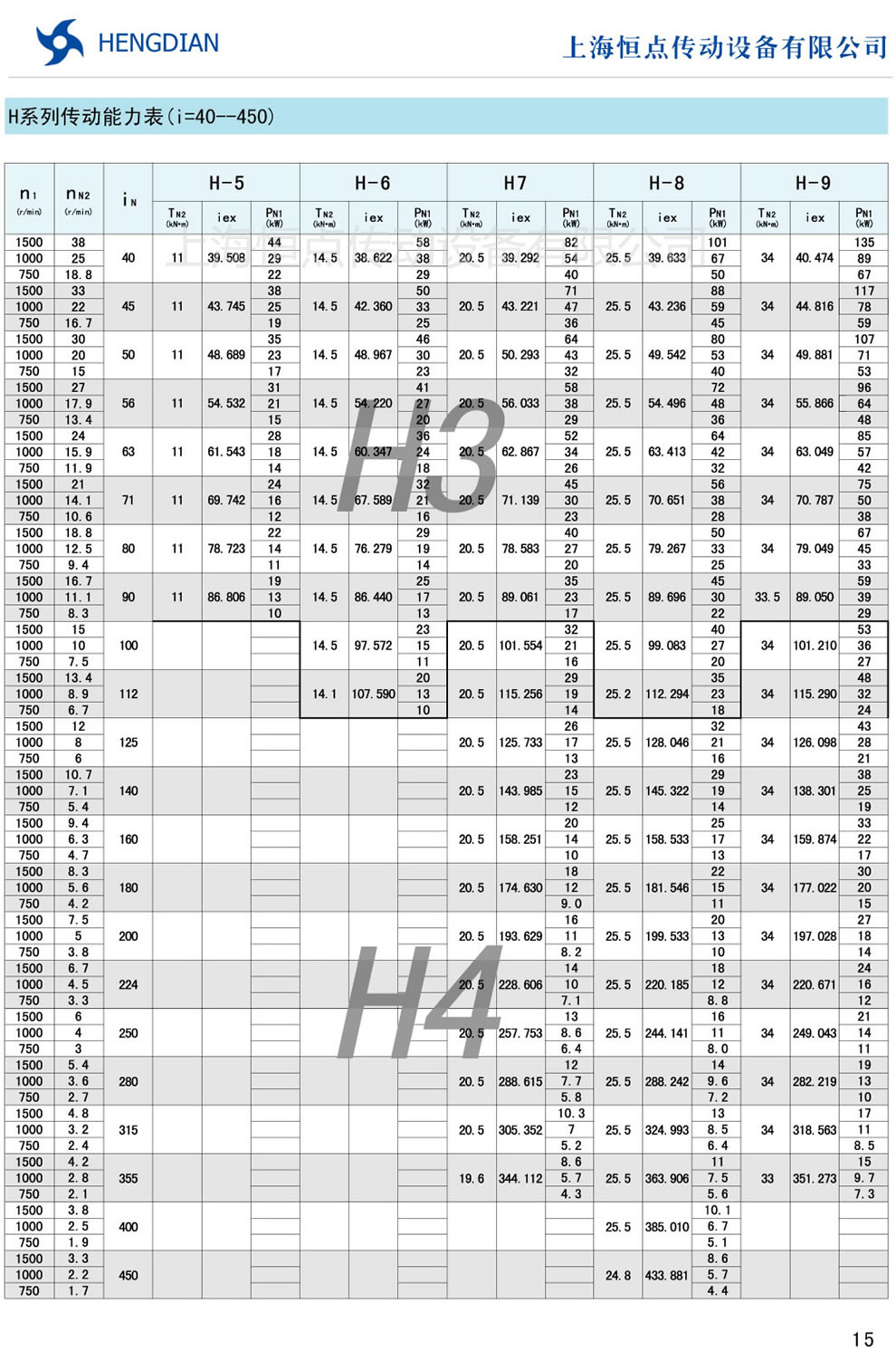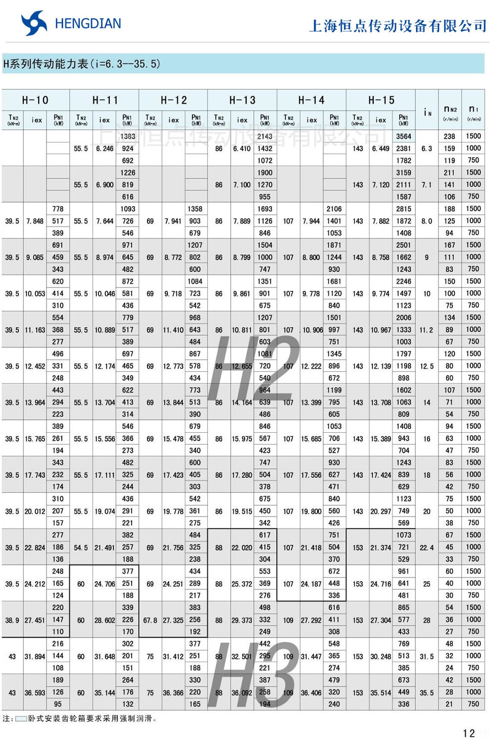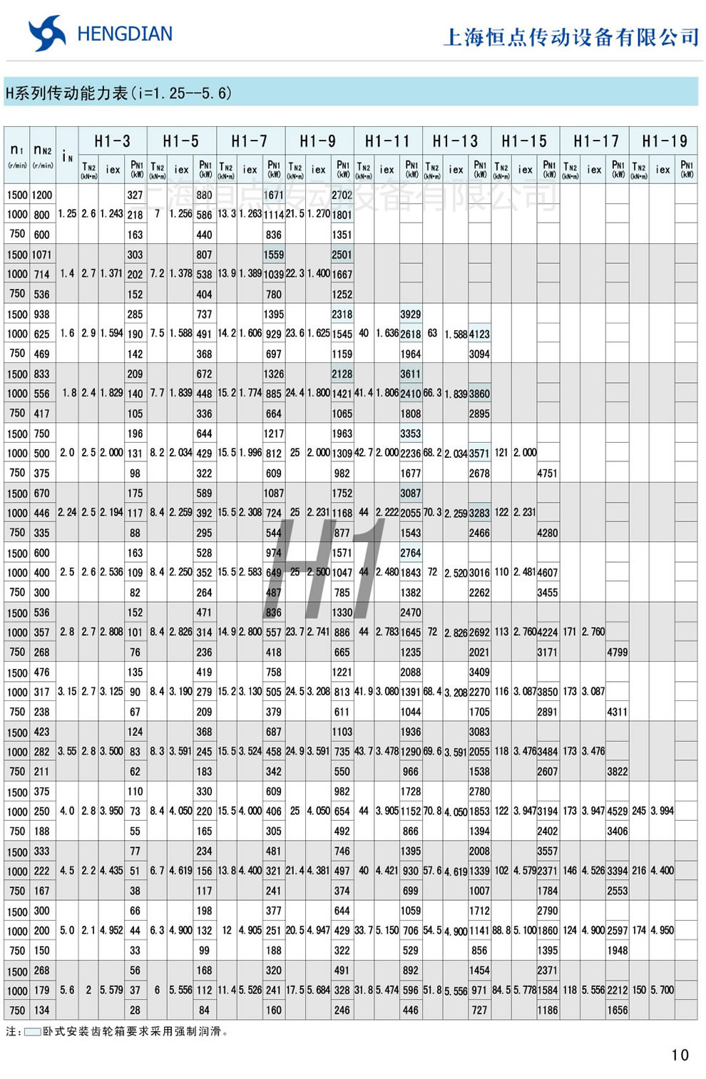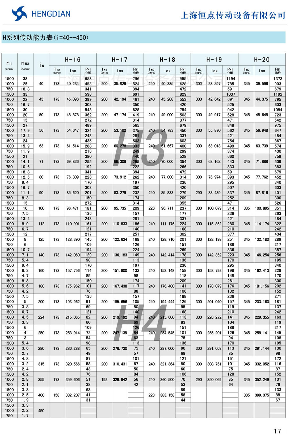 H系列傳動能力表 - HB标準工業齒輪箱