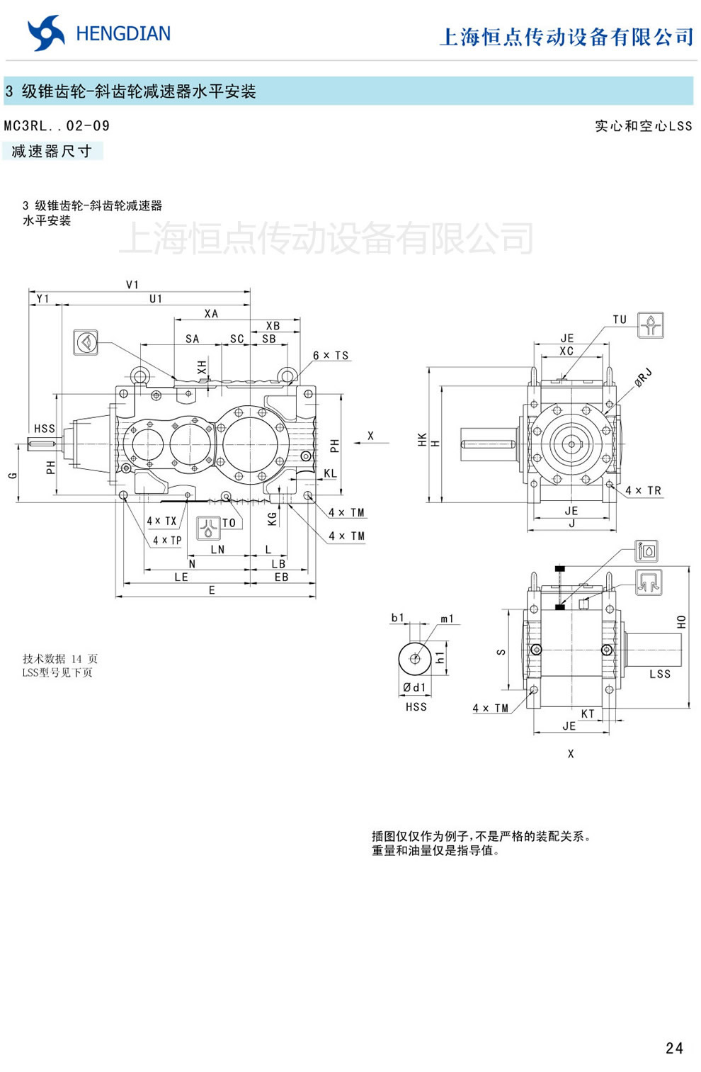 傳動能力和外型安裝尺寸/錐齒-斜齒水平安裝 - MC硬齒面減速器