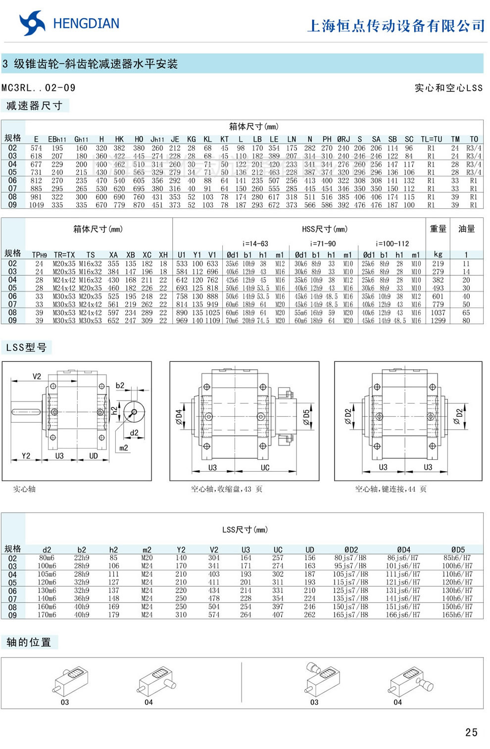 7 - 傳動能力和外型安裝尺寸/斜齒水平安裝 8 - 傳動能力和外型安裝尺寸/斜齒垂直安裝