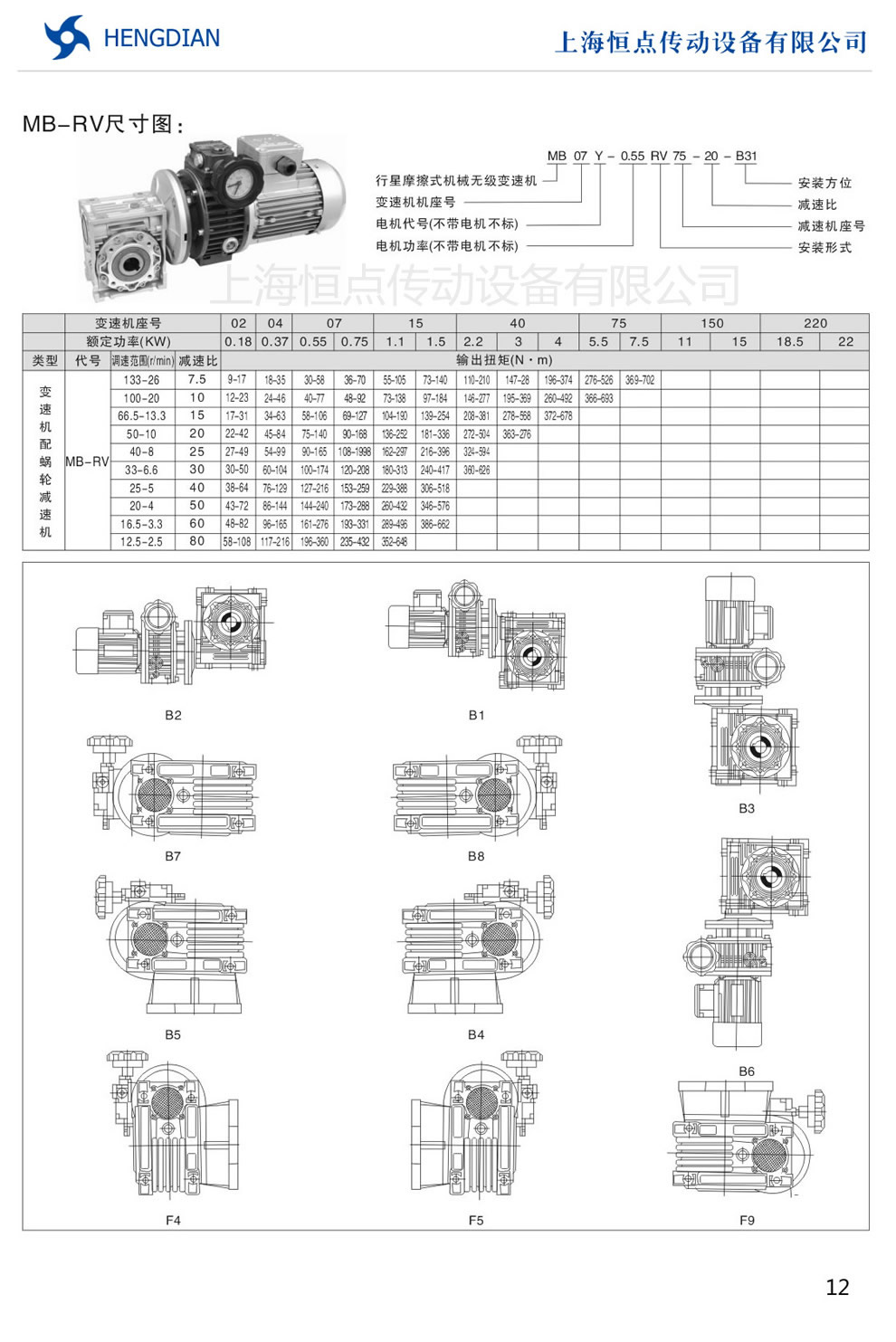 1 - 無級變速機的産品概述 2 - MB變速機的型号表示方式及型号規格表