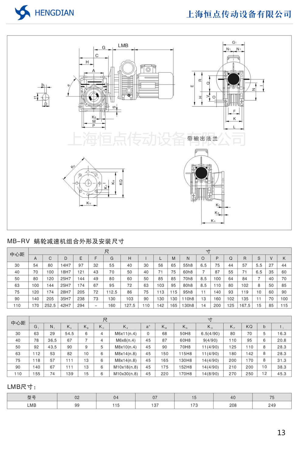 5 - MB與RV系列減速機(jī)組合的性能參(cān)數及外形安裝尺寸